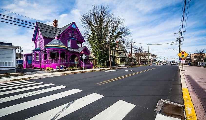 Maison violette le long de Savannah Road à Lewes, Delaware.