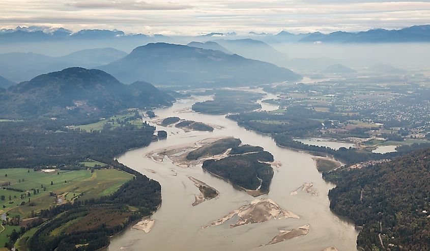 Fleuve Fraser autour de Chilliwack City, en Colombie-Britannique.