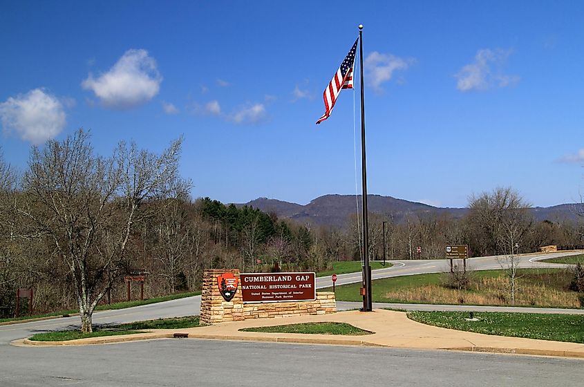 Un panneau accueille les visiteurs du parc historique national de Cumberland Gap à Middlesboro. Crédit éditorial : William Silver / Shutterstock.com