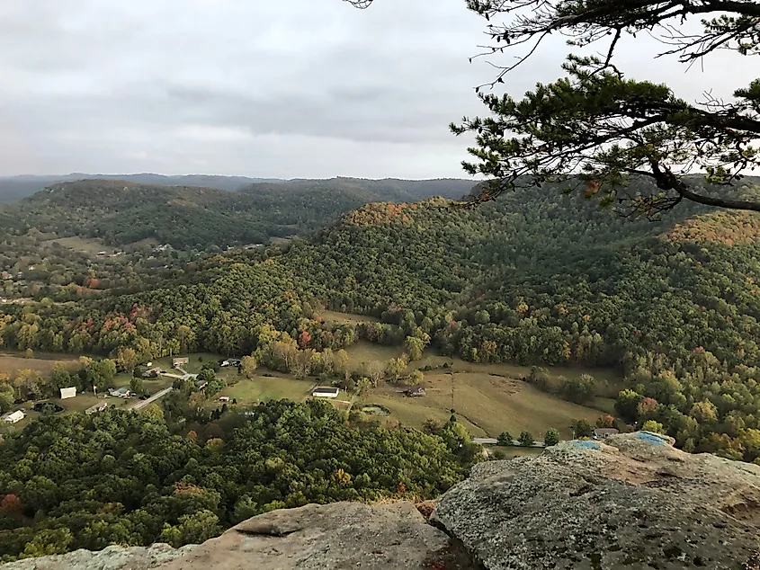 Le musée abrite également des jetons de magasin d'entreprise et des outils que les mineurs transportent quotidiennement dans les puits. Au-delà de la ville, réserve naturelle de Bad Branch State protège les pentes boisées le long de la face sud de Pine Mountain, où une cascade de 60 pieds dégringole sur les falaises de grès dans une gorge de pruche. La réserve comprend des kilomètres de sentiers entourant un terrain escarpé, abritant des espèces de plantes rares et l'un des seuls couples nicheurs connus de corbeaux communs du Kentucky. À moins de dix miles de Benham et près de Cumberland, le parc d'État Kingdom Come atteint 2 700 pieds d'altitude, ce qui en fait le parc d'État le plus haut du Kentucky. Ici, les randonneurs peuvent accéder aux points de vue sur les crêtes et les formations rocheuses environnantes, en empruntant les sentiers intimidants qui traversent les parties supérieures de la montagne.