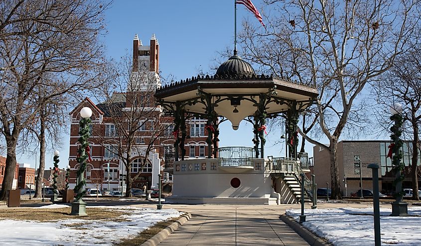 Hôtel de ville d'Oskaloosa en hiver. Crédit image : Rexjaymes via Shutterstock.