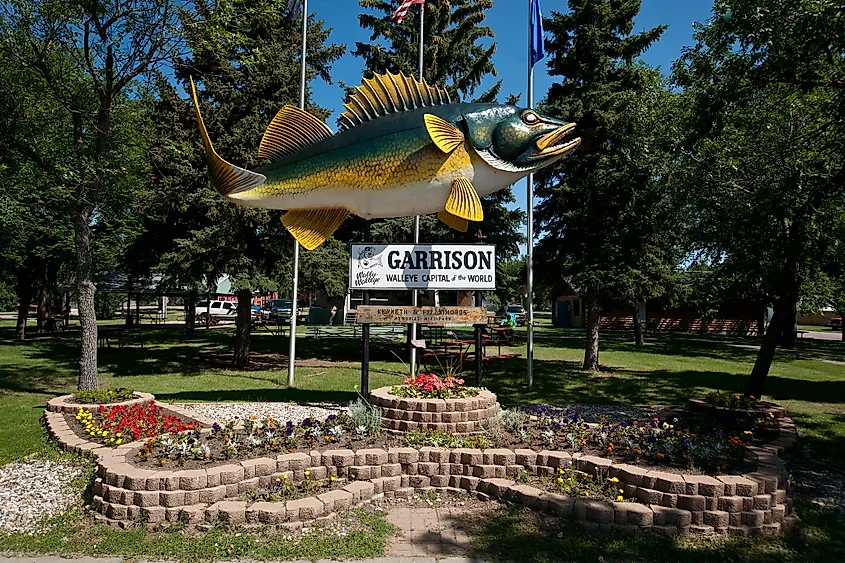 Garrison, dans le Dakota du Nord, est une autre grande petite ville des Prairies. Il abrite Wally le doré, une statue de poisson de 26 pieds qui célèbre la ville connue comme la « capitale mondiale du doré ». Les visiteurs peuvent pratiquer la pêche, la randonnée, la navigation de plaisance et le camping au parc d'État de Fort Stevenson, à 3 miles au sud de Garrison, sur les magnifiques rives du lac Sakakawea.