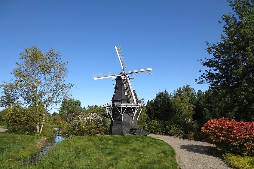 Moulin à vent dans le jardin Kingsbrae à Saint Andrews, au Nouveau-Brunswick. Crédit éditorial : Caio Pederneiras / Shutterstock.com.