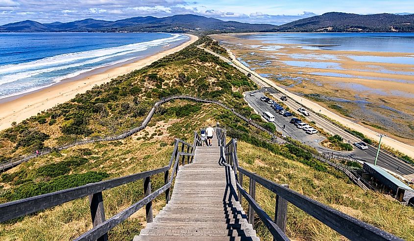 Une caractéristique remarquable est le Bruny Island Neck, un isthme étroit reliant les deux moitiés de l'île. Ce pont terrestre abrite l'emblématique « Neck Lookout », qui offre une vue panoramique sur le littoral environnant et constitue également un sanctuaire pour la diversité des oiseaux de l'île, notamment l'aigle de mer à ventre blanc, une espèce en voie de disparition. Les passionnés de la faune peuvent faire une excursion en bateau pour observer des phoques, des dauphins et même des baleines en migration.