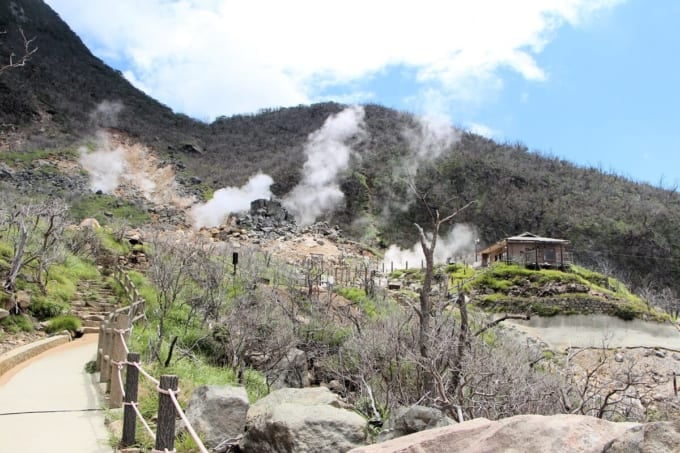Pour ceux qui souhaitent découvrir la nature d’Ōwakudani depuis le sol plutôt que depuis le ciel, il existe un sentier pédestre. Voir de près la vapeur volcanique montante est vraiment impressionnant. Même si le sentier peut paraître accidenté à première vue, il est bien entretenu et populaire auprès des visiteurs.