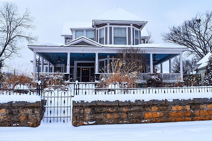 Maison historique sur Main Street Batesville, Arkansas, en hiver.
