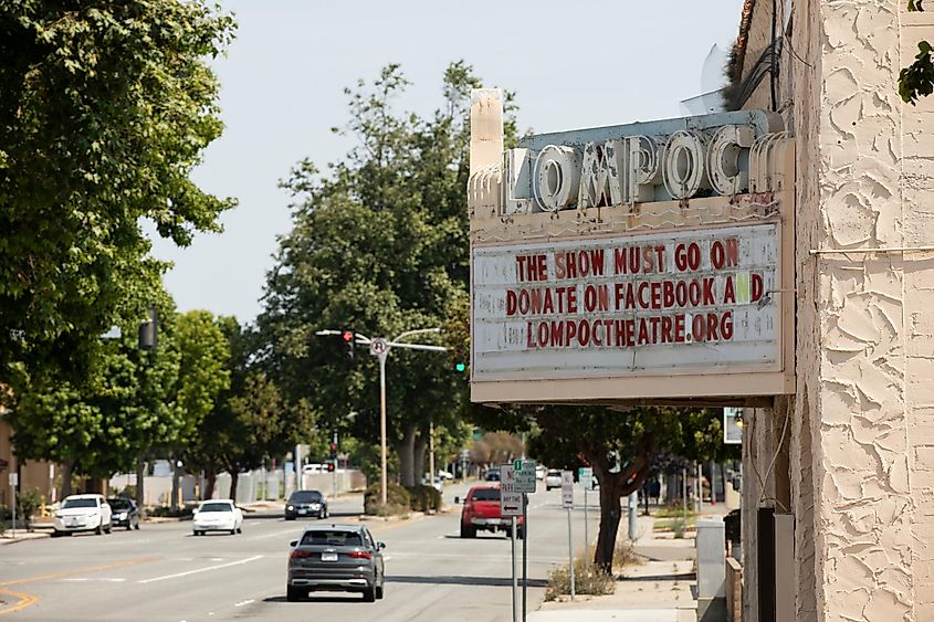 Le soleil de midi brille sur le théâtre historique du centre-ville de Lompoc, via Matt Gush / Shutterstock.com