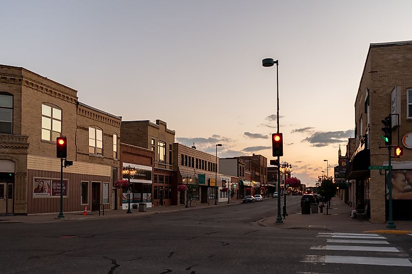 Bâtiments commerciaux au centre-ville de Fergus Falls, Minnesota. Crédit éditorial : Barbarajo / Shutterstock.com