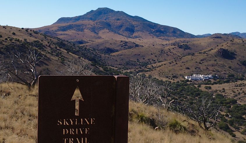 Le panneau Skyline Trail au terminus du parc national de Fort Davis Mountains à Fort Davis, Texas.