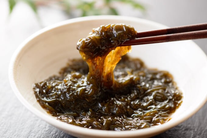 Le Mozuku est un type d'algue comestible qui est couramment ajouté aux soupes, sauces ou autres plats. Il a une texture visqueuse et une forte saveur salée. Le Mozuku contient de nombreux nutriments et composés phytochimiques et est souvent commercialisé comme un super aliment et utilisé dans les suppléments de santé. Des niveaux élevés de fucoïdane polysaccharide se trouvent dans le mozuku, qui possède des propriétés anticancéreuses.