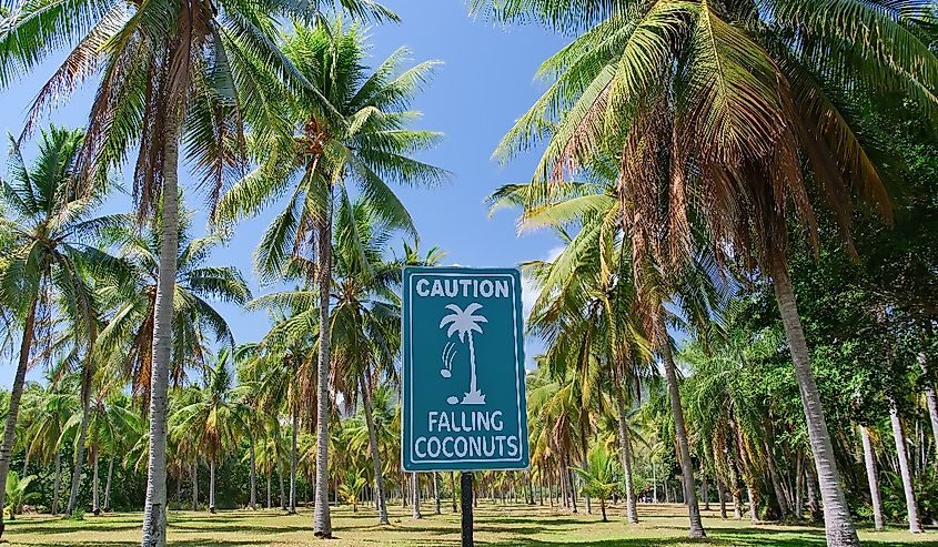 Réserve naturelle de Thala Beach, Queensland, Australie. Signe de chute de noix de coco. Crédit image Hideaki via AdobeStock.