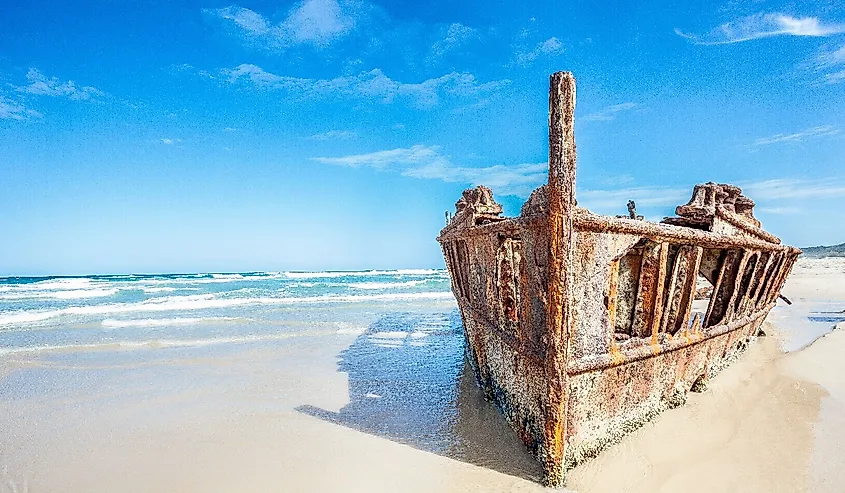 Naufrage du AA Maheno sur l'île Fraser, en Australie. Crédit image Dennis via AdobeStock.