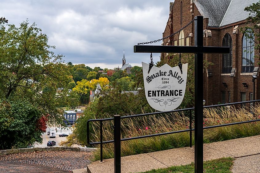 L'entrée de Snake Alley à Burlington, Iowa.