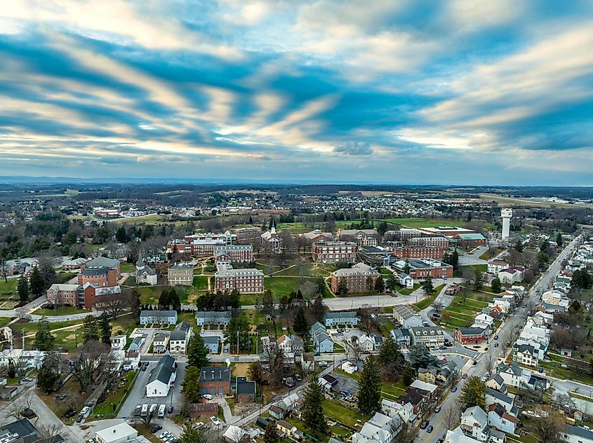 Vue aérienne de Chestertown, Maryland, à l'automne.