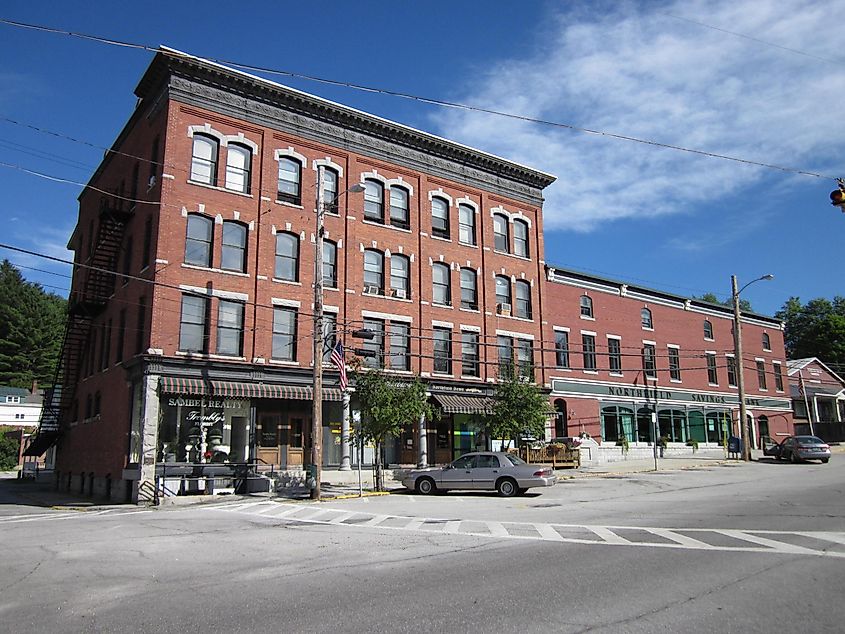 Bloc Mayo du centre-ville, Northfield, Vermont. Crédit image Doug Kerr via Wikimedia Commons
