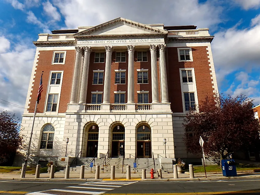 Extérieur du bureau de poste et du palais de justice des États-Unis au centre-ville de Rutland. Crédit éditorial : quiggyt4 / Shutterstock.com