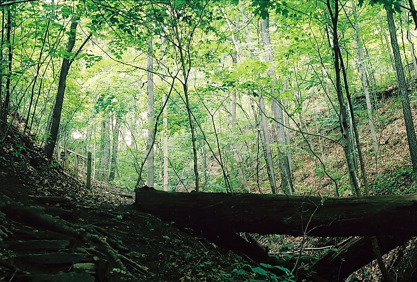 Partie d'un sentier à l'intérieur du Core Arboretum près d'Oak Hill, en Virginie occidentale. Par Darren Ringer – CC BY-SA 2.5,Wikimédia Commons.