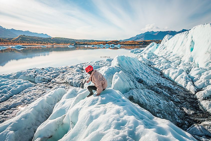 Femme randonnée sur le glacier Matanuska près de Glenn Highway en Alaska.