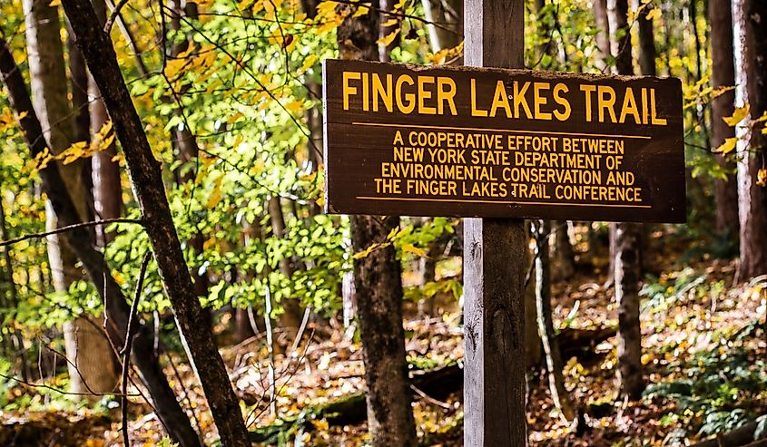 Panneau de départ pour le sentier Finger Lakes dans les montagnes Western Catskill.