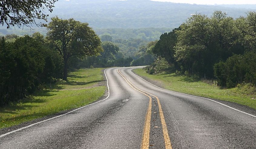 Route et arbres dans le Texas Hill Country.