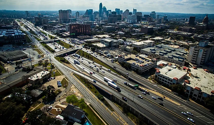 Vue aérienne sur Austin, Texas Interstate 35.