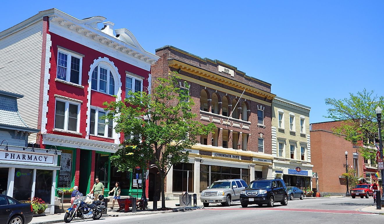 Rue principale du village de Saranac Lake dans les montagnes Adirondack, New York, États-Unis. Crédit éditorial : Wangkun Jia / Shutterstock.com