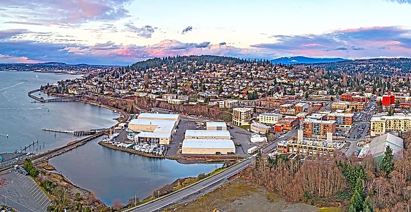Vue grand angle de la marina et du front de mer de Bremerton, via Ceri Breeze / Shutterstock.com