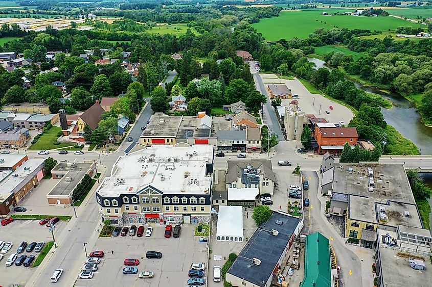 Une vue aérienne de St Jacobs, Ontario, Canada.
