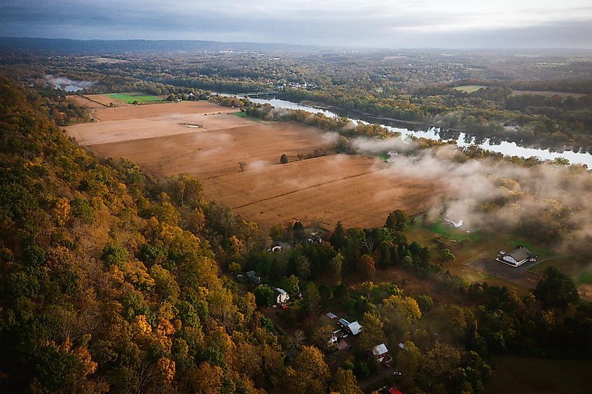 Blairstown, New Jersey, campagne par une belle journée d'automne surplombant les terres agricoles.