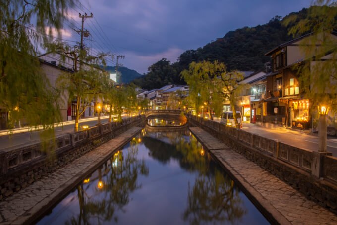 Le Japon abrite de nombreuses petites villes réputées pour leurs sources chaudes, ou Onsen. Ces villes de villégiature sont souvent incroyablement pittoresques, avec plusieurs endroits inspirant des scènes de Studio Ghibli. Un de ces endroits est Kinosaki Onsen dans la préfecture de Hyogo, où les visiteurs sont ramenés à la période Edo. Des invités vêtus de yukata décontractés se promènent le long de la rivière, prenant l'architecture japonaise traditionnelle, les ponts en pierre et les arbres tombants. Entre les bains de printemps chauds, ils peuvent se détendre et s'imprégner de l'atmosphère sereine et intemporelle.