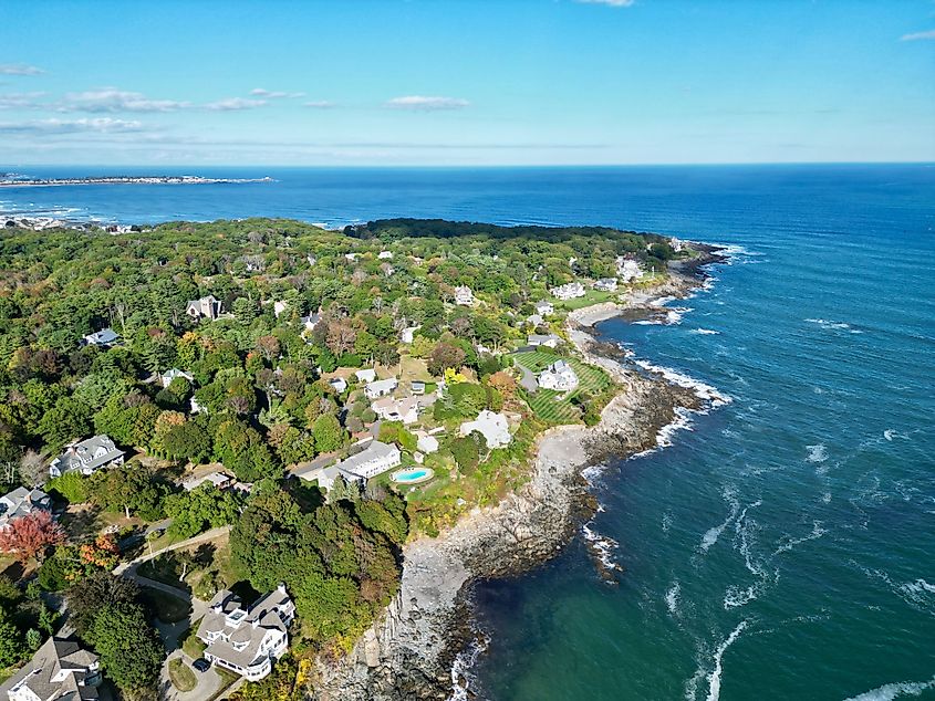 Vue aérienne du littoral de Kennebunkport, Maine.