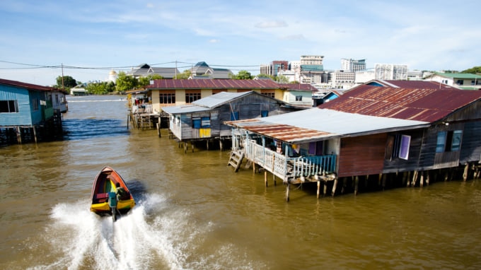 Kampong Ayer est un village aquatique situé au-dessus de la baie de Brunei, à Bandar Seri Begawan, la capitale du Brunei. Environ 39 000 personnes vivent dans des maisons construites sur pilotis au-dessus du plan d'eau, faisant de Kampong Ayer le plus grand village aquatique au monde. Environ 42 groupes de villages reliés entre eux par des passerelles en bois composent Kampong Ayer. Outre les maisons où vivent les habitants, plusieurs structures publiques et privées sont construites dans le village aquatique. Ils comprennent des écoles, des restaurants, des magasins, des mosquées et même un hôpital. Pour ceux qui souhaitent faire du tourisme à Kampong Ayer, vous devez prendre un bateau-taxi depuis la ville proprement dite jusqu'au village aquatique.