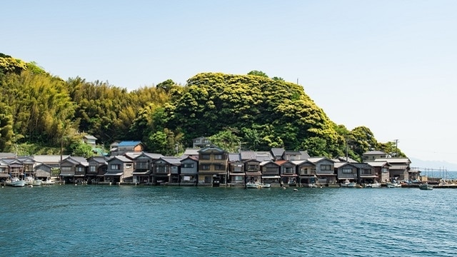 Le long de la côte de la ville d'Ine se trouve une rangée de maisons à bateaux uniques « Funaya ». Ces structures à deux étages servent de garages à bateaux au premier étage, tandis que l'étage supérieur sert de quartier d'habitation. S'étendant sur 5 km le long de la côte, environ 230 hangars à bateaux créent ce paysage pittoresque, reconnu comme quartier d'architecture traditionnelle protégé.
