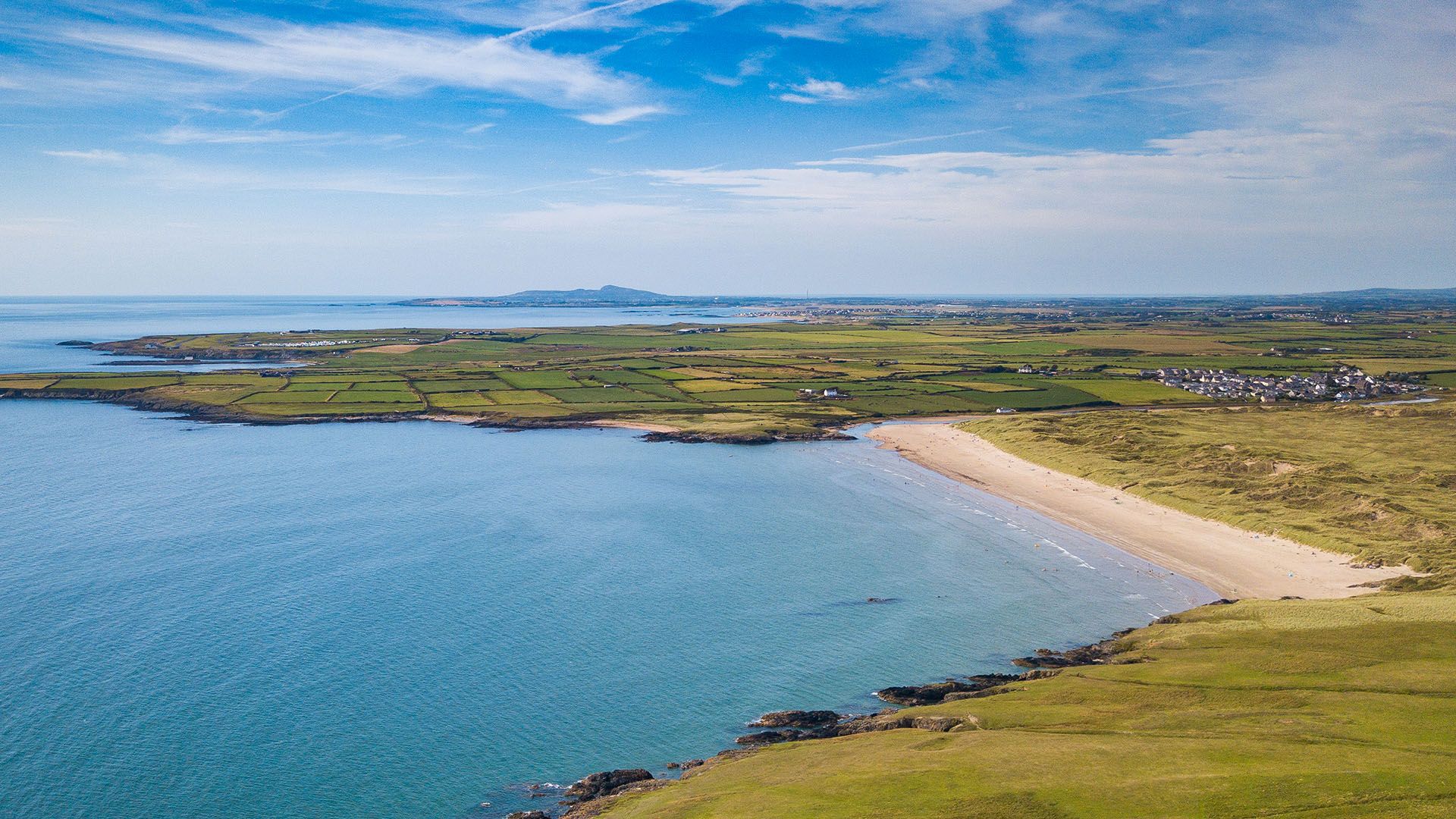 Vue aérienne de la baie et de la plage d'Aberffraw, Anglesey, Pays de Galles © januszkurek.com/Shutterstock