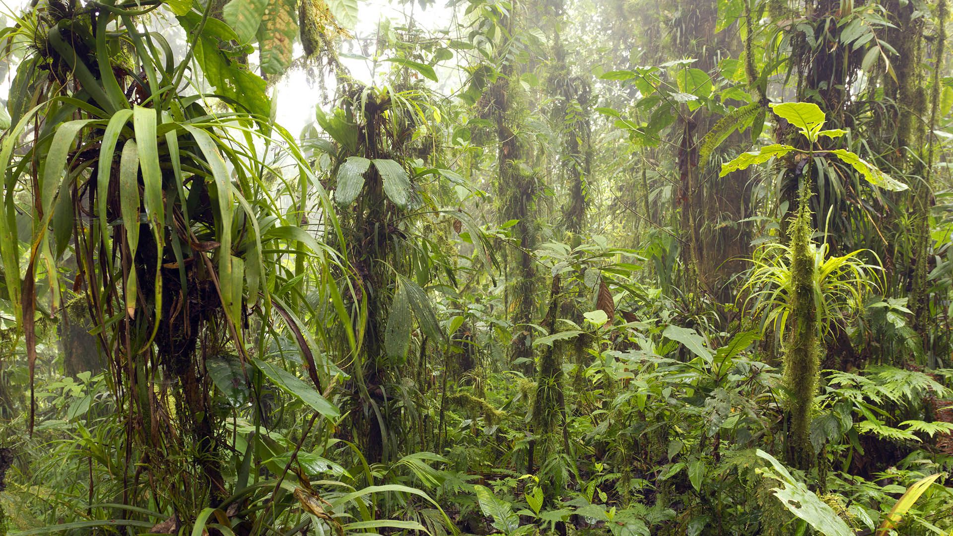 Intérieur d'une forêt nuageuse humide traversée par la brume, sur la chaîne côtière de l'ouest de l'Équateur © Dr Morley Read/Shutterstock