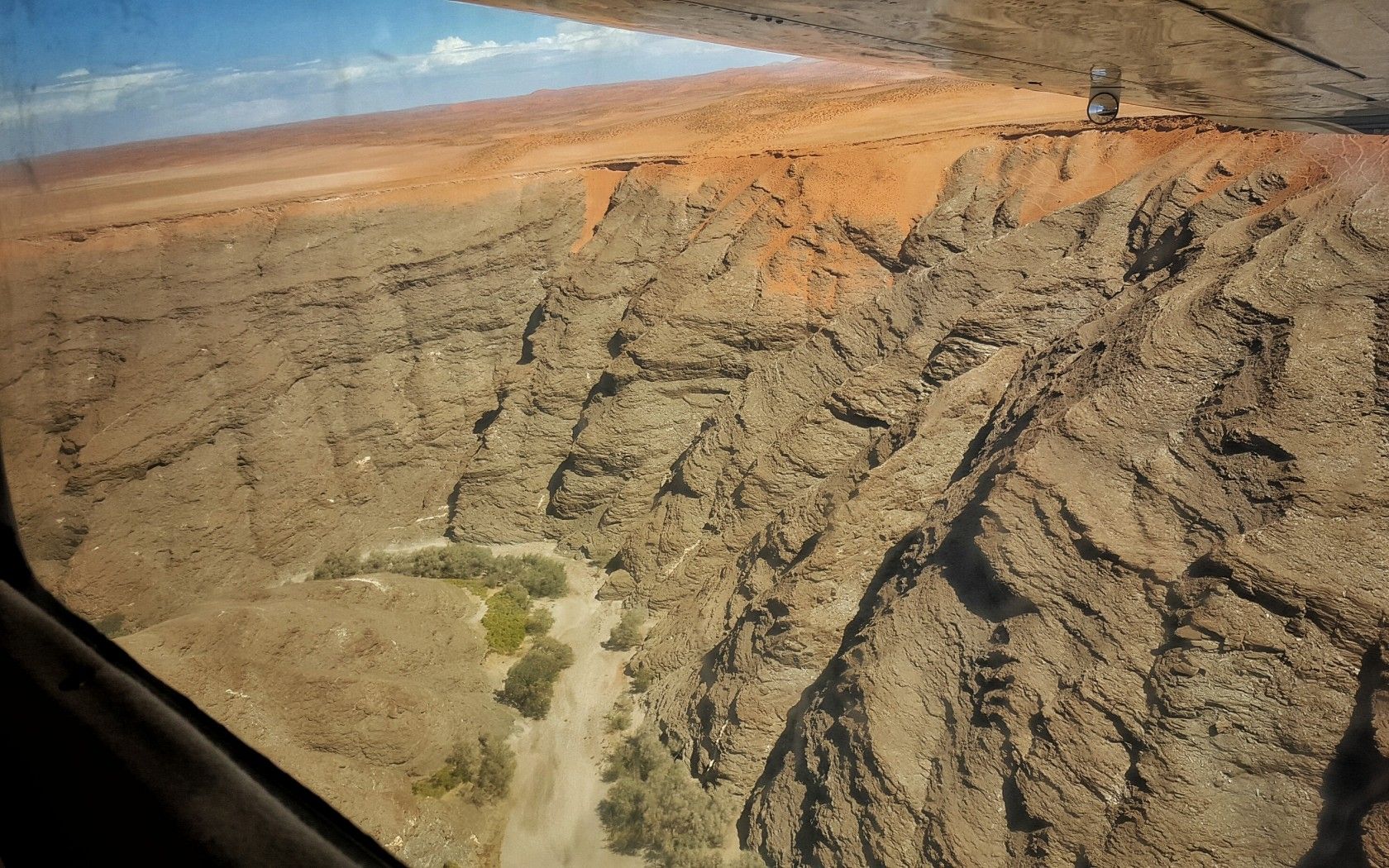 Juste au moment où je pensais devoir le dire au pilote, qui n'avait peut-être pas réalisé que nous descendions si bas que je pouvais établir un contact visuel avec un oryx broutant sous nous, le sol s'est effondré sous notre avion et nous avons navigué joyeusement dans le ciel et dans le canyon de Kuiseb. J'ai poussé un soupir de soulagement, ainsi que le reste de mes compagnons de vol, et le pilote s'est retourné pour faire un sourire ironique. C'était cruel.