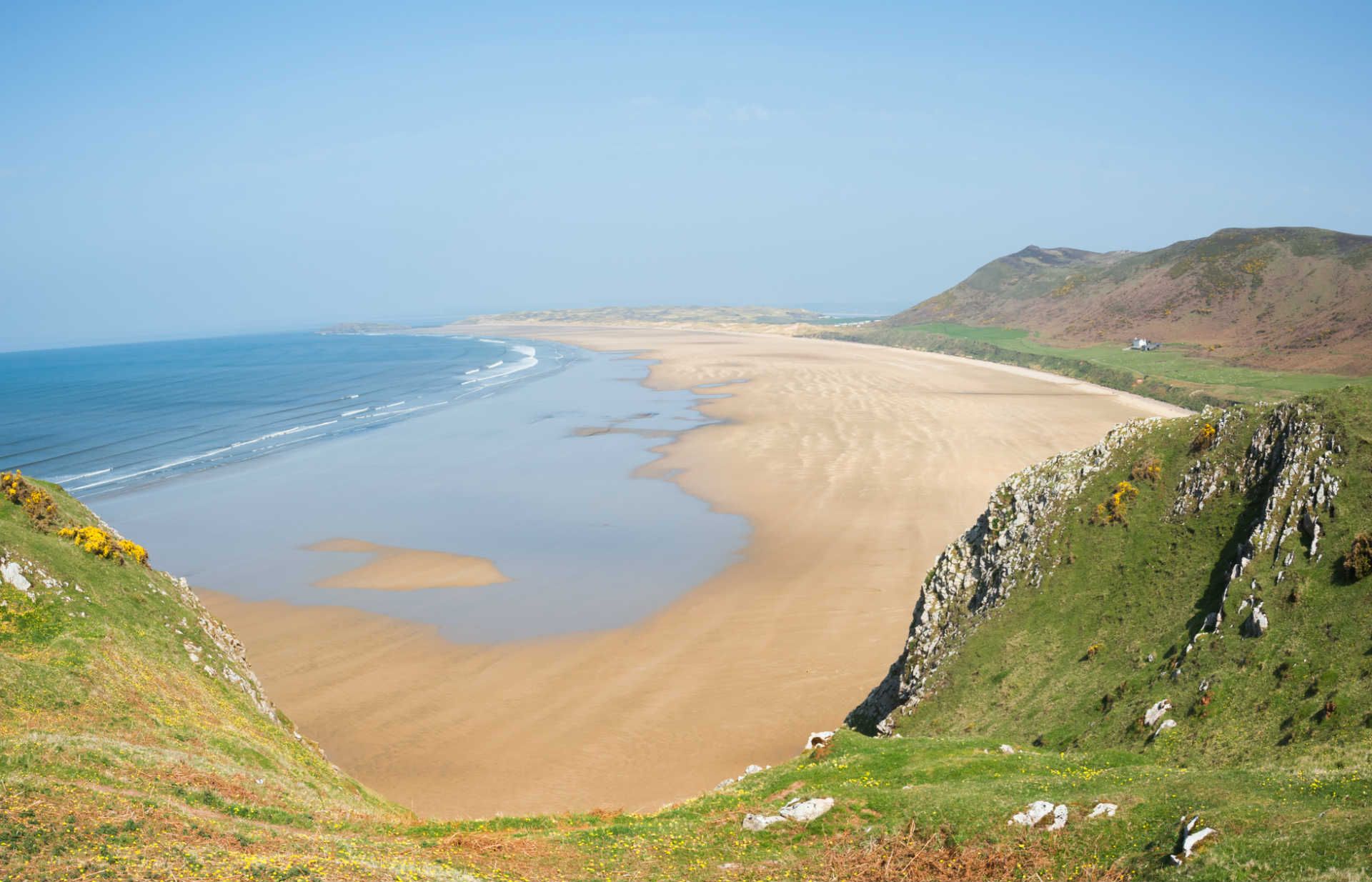Par une journée ensoleillée dans la baie de Rhossili, vous pourriez être en Méditerranée, dit-on. À marée basse, il y a une immense bande de sable magnifique et les falaises qui entourent la plage sont vertes et luxuriantes, abritant des oiseaux marins bavards. Prenez le temps de retrouver l'épave de l'Helvetia, qui a fait naufrage ici en 1887.