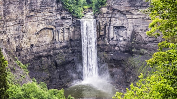 Le parc d'État de Taughannock Falls est un parc de 750 acres situé dans le comté de Tompkins à New York, à 20 minutes en voiture d'Ithaca. La principale caractéristique du parc réside dans ses cascades, les Taughannock Falls, qui tombent d'une eau claire à 215 pieds. Grâce à cela, elle est célèbre pour être la plus haute cascade à une seule goutte à l’est des montagnes Rocheuses. Le parc d'État est une destination touristique idéale pour les amoureux de la nature et les randonneurs visitant Ithaque, car la région est criblée de longs sentiers de randonnée et regorge de plantes et d'animaux sauvages uniques.