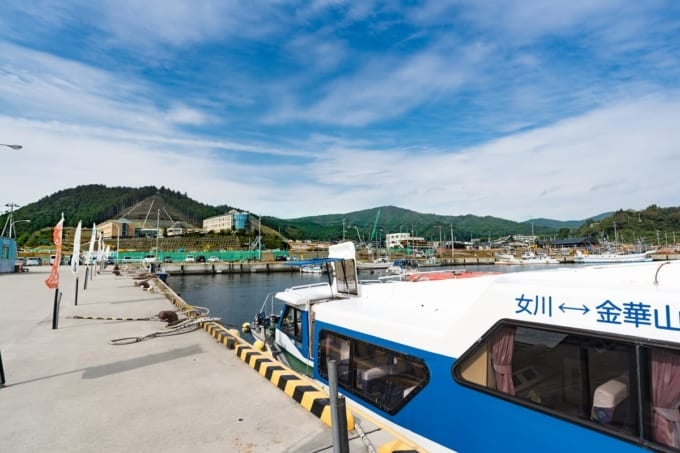 L'itinéraire via le port d'Onagawa prend environ 35 minutes en bateau jusqu'à Kinkasan. Ce ferry ne fonctionne également régulièrement que le dimanche et les jours fériés. Le samedi, il y a des départs irréguliers et en semaine, un service de bateaux à moteur est disponible. Pour plus de détails, visitez le site Web «Shio Planning».