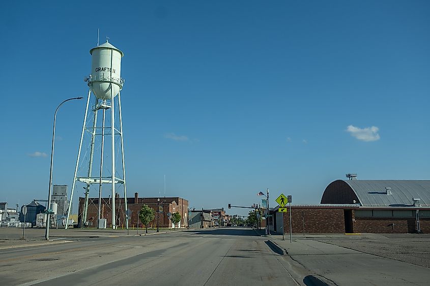Grafton est une ville à peu près aussi tranquille que vous en trouverez ailleurs. Ancienne ville ferroviaire, elle a été fondée en 1882 le long de la Great Northern Railway et possède un centre-ville historique qui a peu changé depuis. Découvrez l'imposant palais de justice du comté de Walsh, construit en 1904, et l'ancien théâtre Strand, construit 10 ans plus tard et qui diffuse toujours des films en première diffusion sur son écran d'origine. Également digne d'être photographié, le Heritage Village et le musée de Jugville présentent plusieurs bâtiments historiques et bâtiments de ferme qui, ensemble, offrent une fenêtre sur le passé.