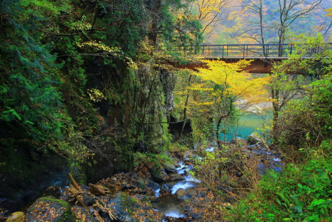 Si explorer les montagnes autour de Nyuto Onsen et les magnifiques paysages du lac Tazawa ne suffit pas, un court trajet en bus depuis Kakunodate vous amènera à la vallée de Dakigaeri. Avec ses magnifiques paysages fluviaux et ses gorges spectaculaires, la vallée est un incontournable pour les amoureux de la nature.