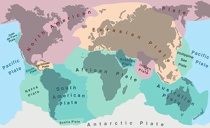 Les plaques tectoniques avec une zone supérieure à 20 millions de km2 sont considérées comme des plaques majeures (ou primaires). Les sept principales plaques tectoniques sont la plaque du Pacifique (103 300 000 km2), la plaque nord-américaine (75 900 000 m²), la plaque eurasienne (67 800 000 m²), la plaque africaine (61 300 000 m²), la plaque antarctique (60 900 000 sq. Assiette sud-américaine (43 600 000 km2).