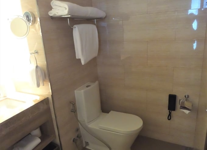 Les toilettes et la douche sont au même endroit. Les toilettes sont bien sûr de style occidental.