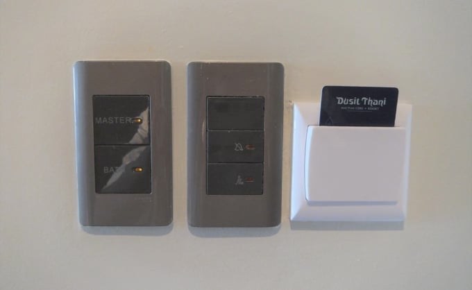 Il y a un autre bouton à l'extérieur de la pièce. La lumière indique si vous souhaitez que votre chambre soit nettoyée par le ménage ou si vous ne souhaitez pas être dérangé.