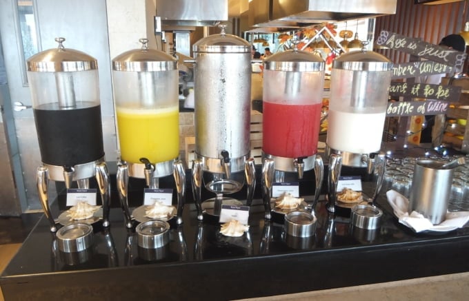 Boissons. Il existe un large choix de lait, jus d'ananas, jus de pastèque, etc.