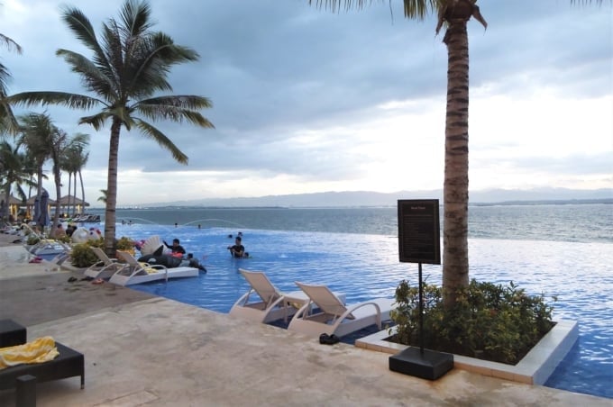 La piscine principale, la piscine à débordement, est toujours bondée de monde.