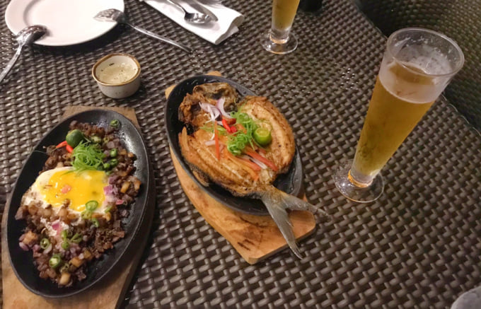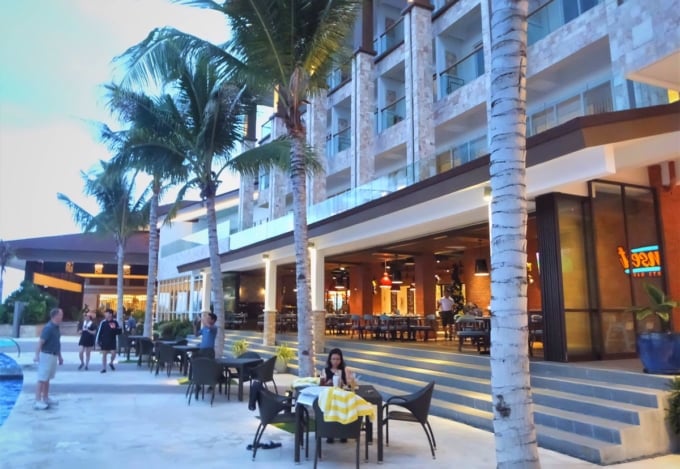 Il y a aussi des sièges en terrasse pour que vous puissiez dîner au bord de la piscine. Bravo à la nourriture et à la bière locales !
