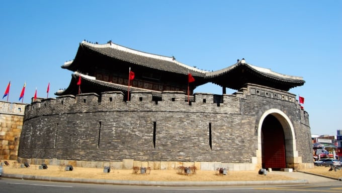 La forteresse de Hwaseong, classée au patrimoine mondial de l'UNESCO, a été construite en 1794 à la fin de la dynastie Joseon comme retraite royale. Hwaseong, le plus grand palais temporaire (haenggung) de Corée, est entouré d'un mur de forteresse de 5,7 km de long, avec des portes, des tourelles, des tours de guet et des installations militaires stratégiquement placées à l'est, à l'ouest, au sud et au nord.
