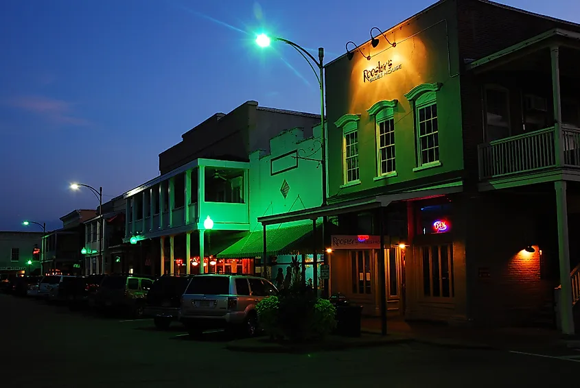Centre-ville d'Oxford, Mississippi, la nuit.