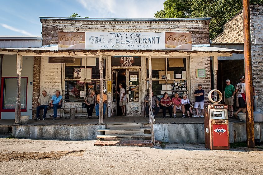 Les gens attendent devant l'épicerie et le restaurant Taylor à Oxford, Mississippi. Crédit éditorial : Jacque Manaugh / Shutterstock.com.